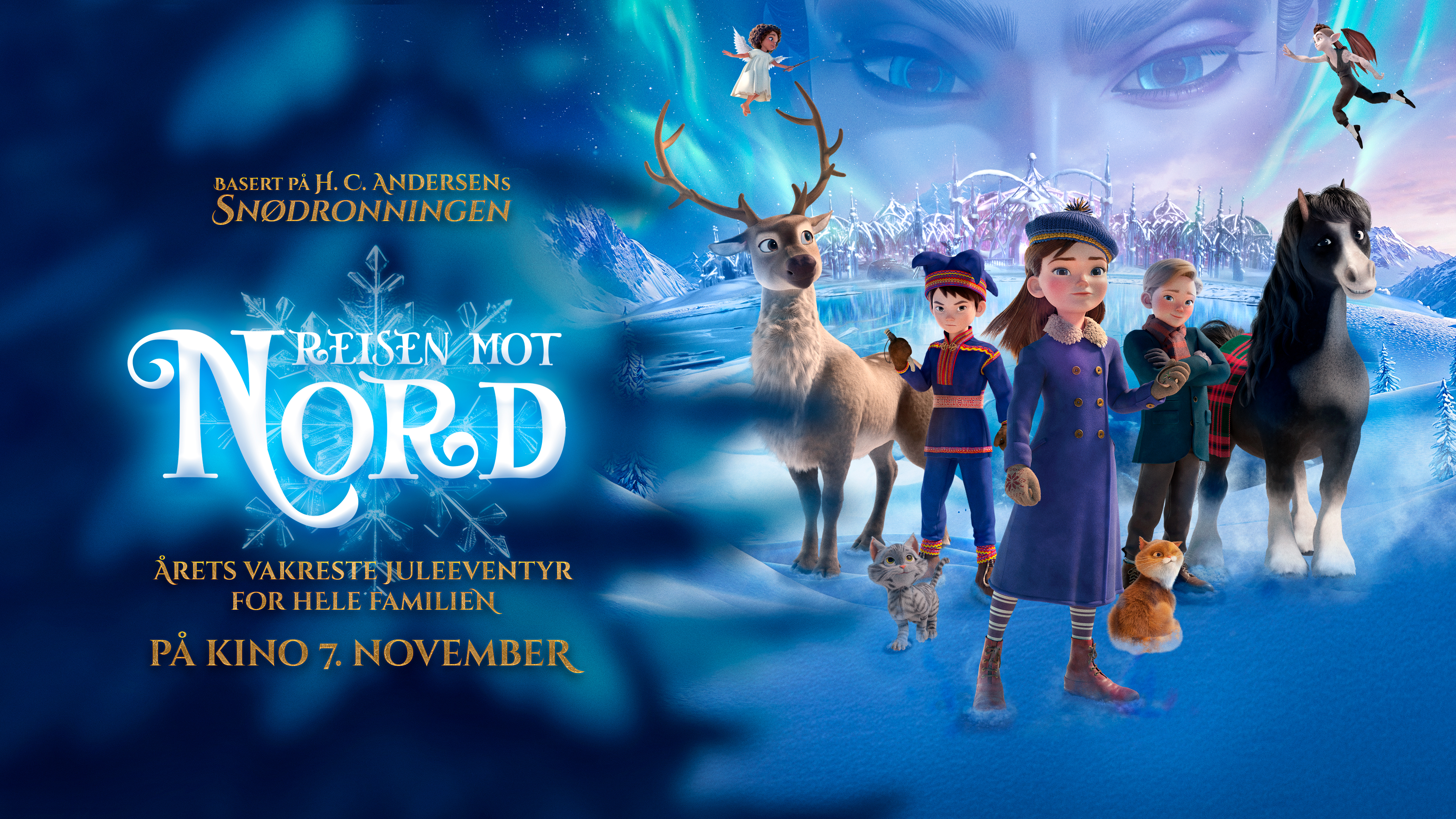Reisen mot Nord er basert på H.C. Andersens klassiske eventyr "Snødronningen", så her vil både små og store kjenne seg igjen i de kjente fortellingene 📖 Vi følger Gerda, en modig jente som må finne sin venn, Kai, som er blitt tatt av Snødronningen! Gerda legger ut på en lang reise til Snødronningens palass langt nord i Norge, og på veien møter hun både dyr, en heks, og andre hjelpere🧙🦌🪿🪄