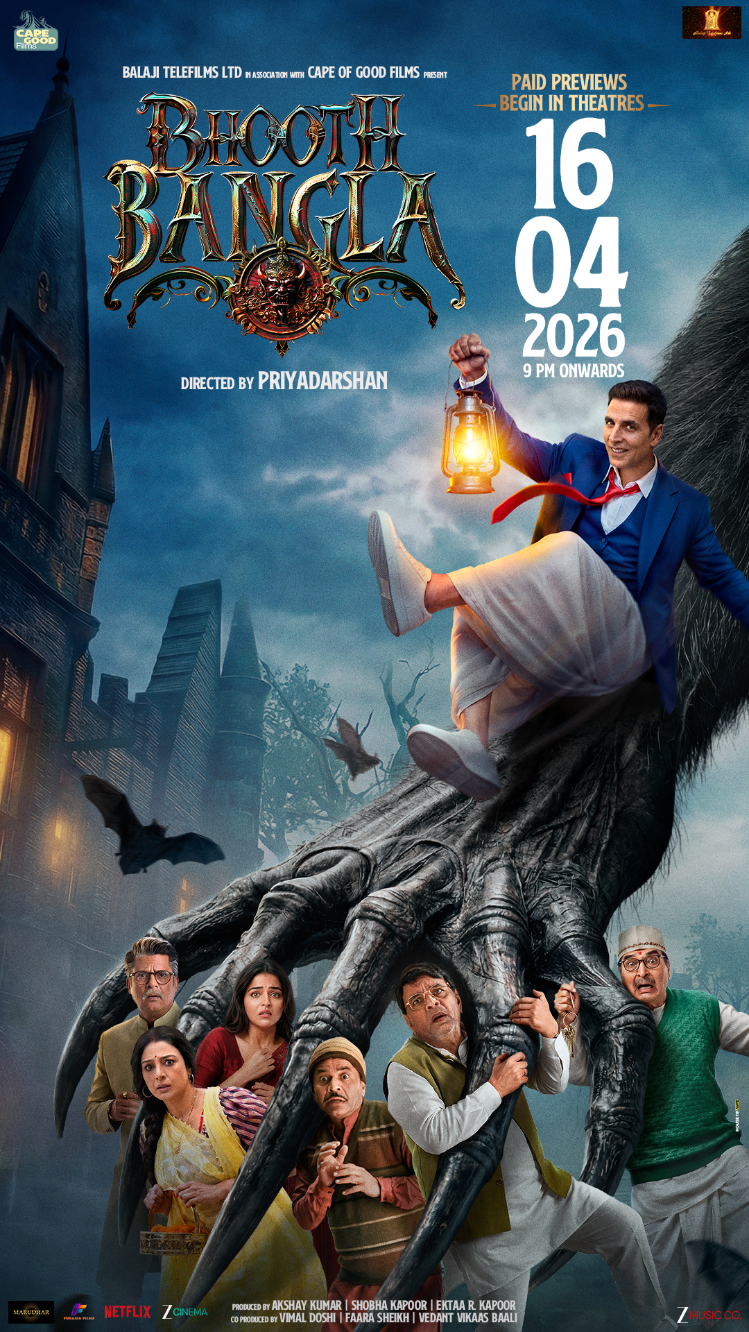 The film is produced by Shobha Kapoor and Ekta Kapoor under Balaji Motion Pictures in association with Akshay Kumar’s production company, Cape of Good Films.In an interview, director Priyadarshan stated that Bhooth Bangla is a horror-comedy based on Indian mythology and black magic, with inspiration drawn from ancient texts such as the Vedas and the Mahabharata.