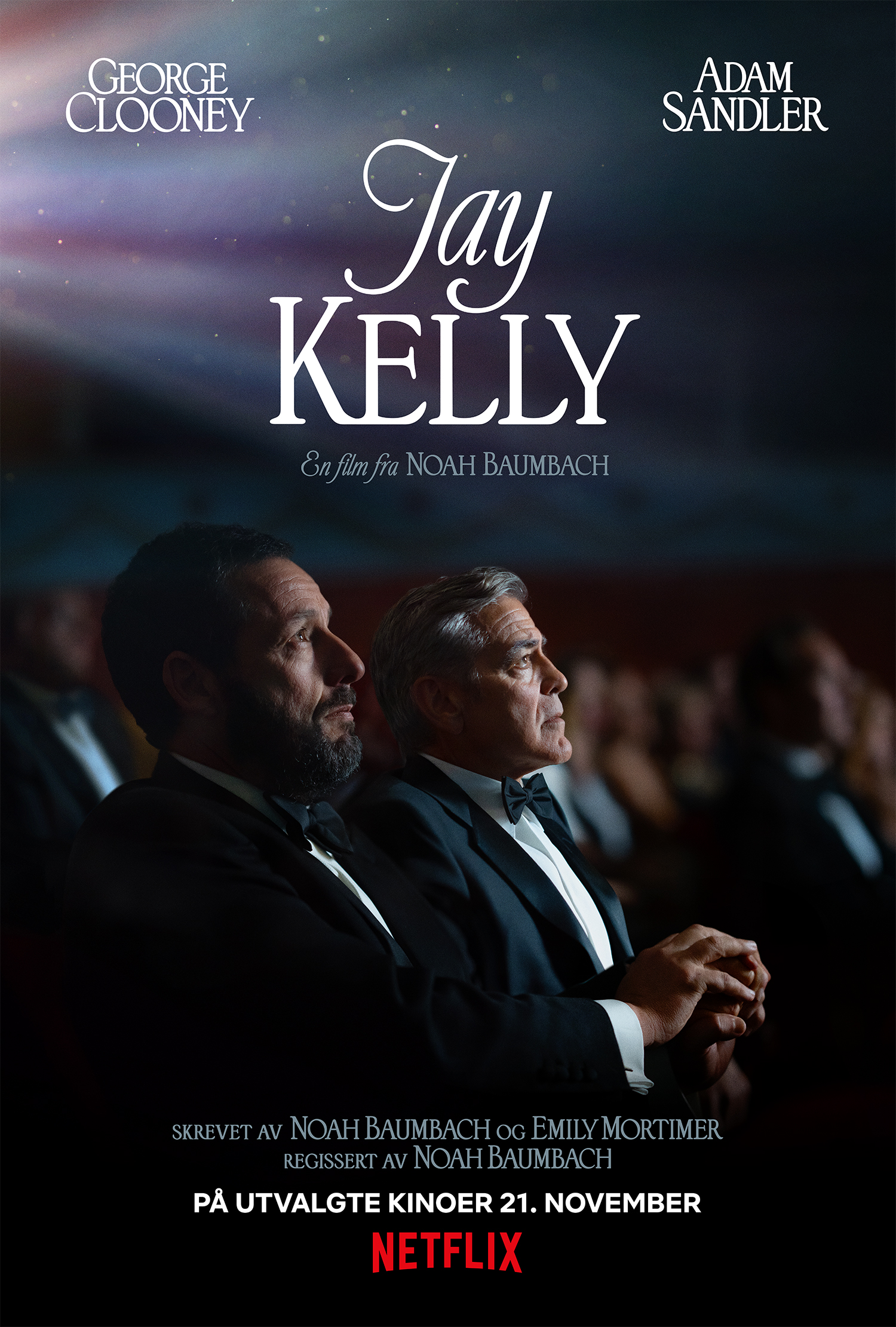 Jay Kelly er den nye filmen fra Oscar-nominerte Noah Baumbach, hvor vi følger den verdenskjente skuespilleren Jay Kelly (George Clooney) og hans lojale manager Ron (Adam Sandler) på en hektisk og overraskende dypsindig reise gjennom Europa. Underveis tvinges de til å konfrontere valgene de har tatt, forholdene til sine nærmeste – og hva slags ettermæle de ønsker å etterlate seg.